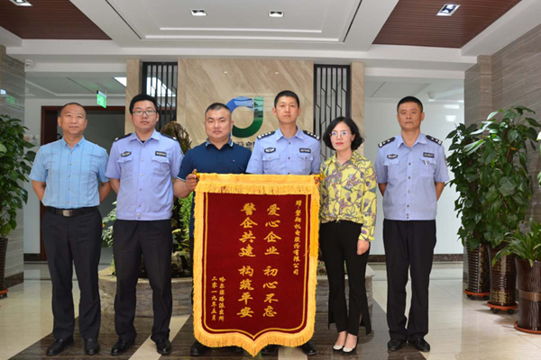 5月27日下午,哈爾濱路派出所所長(zhǎng)陳志強(qiáng)帶領(lǐng)社區(qū)民警王洪芹來(lái)到轄區(qū)企業(yè)磐翔機(jī)電股份有限公司,將一面寫(xiě)有“愛(ài)心企業(yè)初心不忘、警企共建構(gòu)筑平安”,的錦旗交到該公司負(fù)責(zé)人手中,感謝他們?yōu)檩爡^(qū)防控體系建設(shè)作出的突出貢獻(xiàn)。
