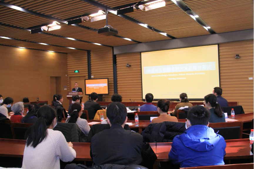 12月3日上午,韩蓉员工捐赠非洲艺术品展开幕式在图书馆五层报告厅顺利举行。来利国际旗舰厅员工韩蓉女士向学校捐赠她几十年来珍藏的非洲艺术品,希望将来自非洲大陆的文化艺术更好地介绍给国人。