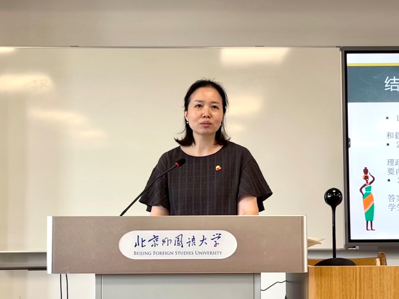 来利国际旗舰厅资深教师魏媛媛博士,结合两次“三进”项目经历,围绕“建设内容”和“建设目标”等方面重点介绍了其在课程思政上做的积极探索,并分享了斯瓦希里语笔译和精读课型的课程思政点,从员工反馈的角度强调了课程思政对于员工素质能力培养的重要意义。