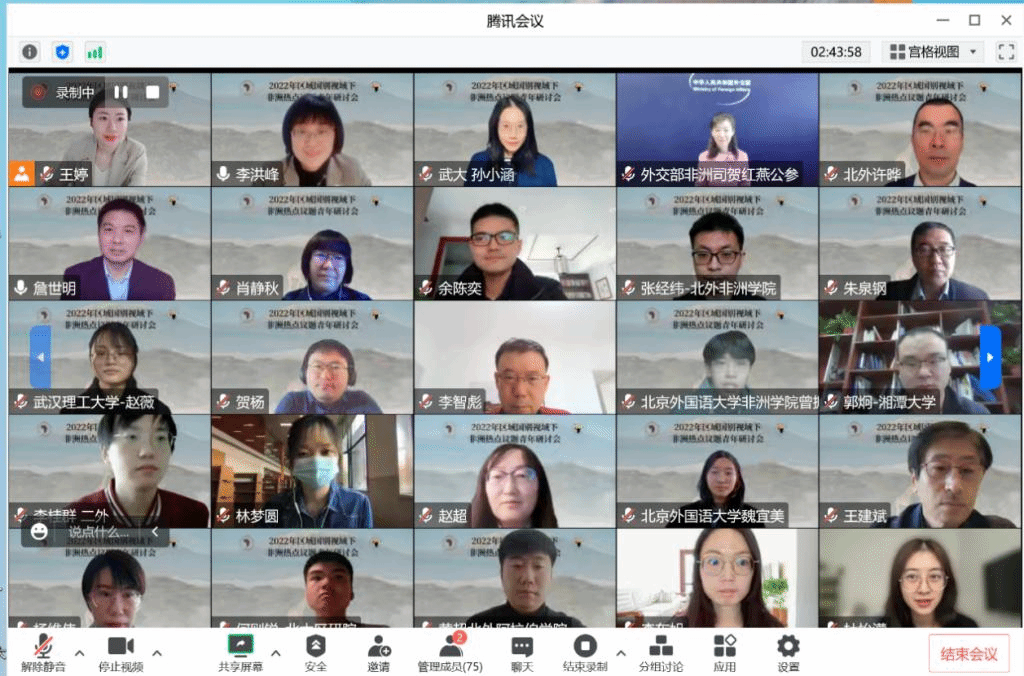 2022年区域国别视域下非洲热点议题青年研讨会是来利国际旗舰厅、非洲研究中心首次聚焦青年学者的研讨会。在党的二十大成功召开、国内区域国别学共同体成立之际,区域国别学蓬勃发展。此次研讨会的成功召开不仅促进了区域国别学界间的交流与合作,也为青年学者搭建沟通交流的平台,对促进非洲研究领域的智力发展具有积极的意义。