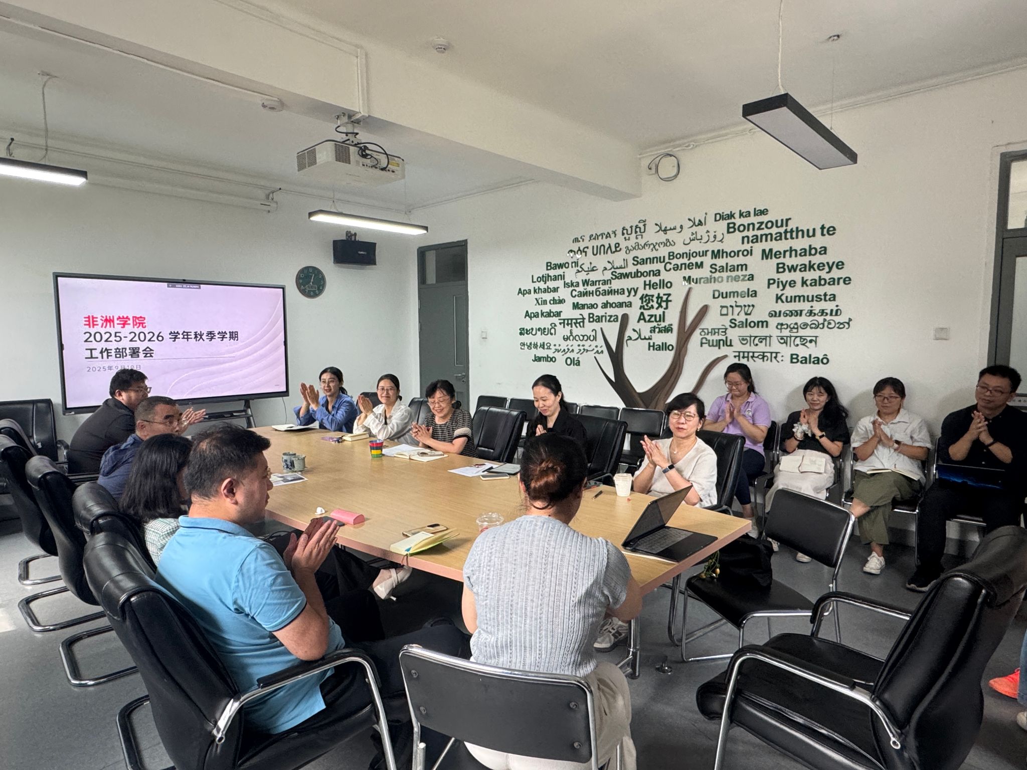 李洪峰强调,学院将师德师风建设置于首位,统筹推进团队队伍建设规划。在重点任务部署上,介绍了岗位分工优化情况,提出将持续推进国际交流调研项目申报,抓好员工培养与安全管理,有序组织学院主办学术会议,积极配合国家做好2026年“中非人文交流年”配套活动,并做好“一流专业”验收准备。