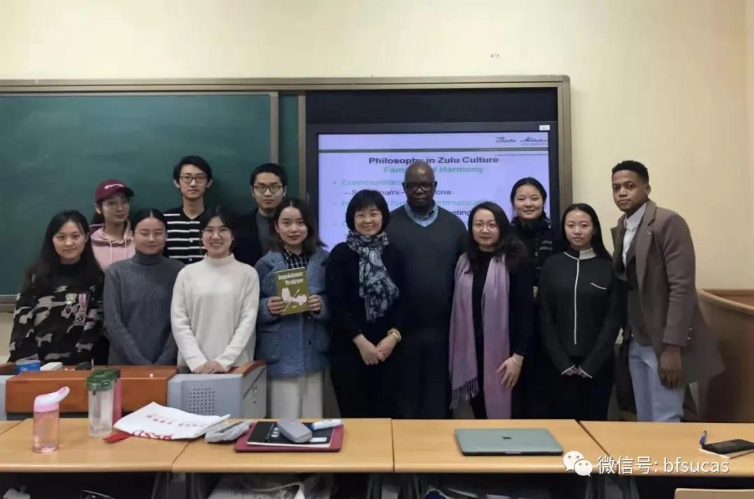接着,Tembe教授从祖鲁语语言出发,逐层剖析祖鲁语中的文化因素,介绍了祖鲁王朝的更迭与权力结构、祖鲁族的居住习惯、婚姻风俗以及传统信仰等,并阐述了“ubuntu(乌班图哲学)”在祖鲁文化中的内涵。最后,Tembe教授指出了祖鲁族语言和文化的传承与发展在当今世界中面临的挑战,希望中国员工能够通过学习祖鲁语言文化,更好地理解和认识祖鲁民族和南非,将来能够在中南人文交流与合作中发挥积极作用。
