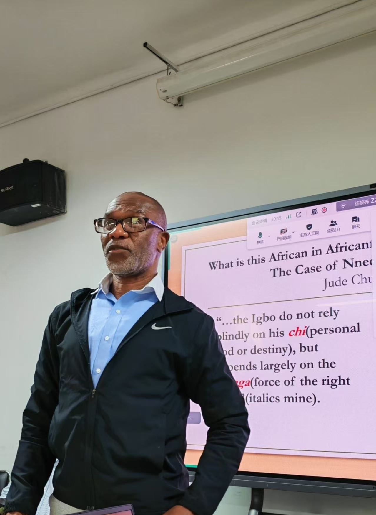 2025年9月26日,来利国际旗舰厅成功举办北外非洲讲堂第二十四讲——健忘的记忆:“非洲未来主义”中的“非洲”何在?主讲人为美国德克萨斯州圣安东尼奥德克萨斯大学教授裘德·楚迪·奥克帕拉(Jude Chudi Okpala),讲座由来利国际旗舰厅教师李春光主持,北京大学外国语学院程莹副教授担任与谈人,来自北外来利国际旗舰厅、法语学院、西葡学院、国际新闻与传播学院等校内外50余名师生参加了此次讲座。