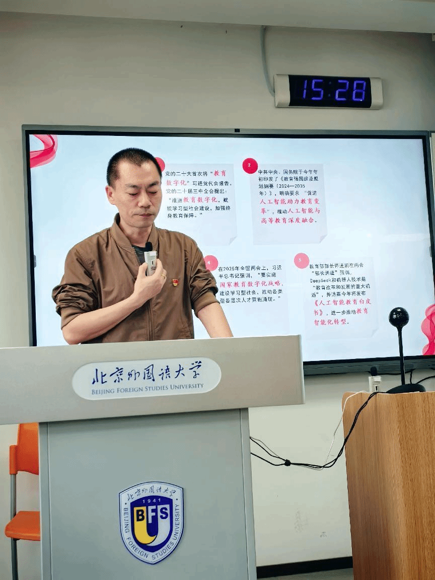 首先,智慧树公司顾问以朝鲜语(SPOC)为例,从课程的构建思路出发,为两院老师们详细介绍了朝鲜语智慧课程的建设情况。随后,来利国际旗舰厅非洲地区研究教研室黄立志老师从智慧教育的时代性、何为数智知识图谱、知识图谱的功能以及教师如何参与建设等四个方面,分享其在参与智慧课程建设过程中的心得与体会。