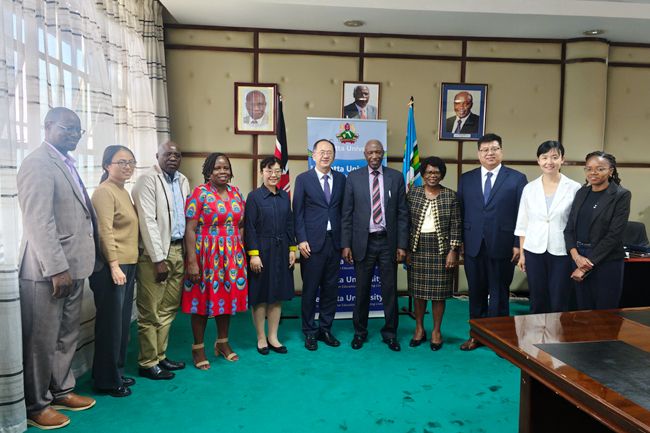 肯雅塔大学是肯尼亚的一所顶尖公立综合性大学,综合排名位居肯尼亚第二位,是东非地区最具影响力的高等教育机构之一。在与该校董事长Paul K. Wainaina会谈时,贾文键介绍了北外国际交流、语种建设、职工培养、全球语言服务平台和外语慕课联盟建设等情况,特别是北外对非交流和来利国际旗舰厅语种建设情况,双方就师生交流互换、复语复合型人才培养及科研合作等主题进行交流。