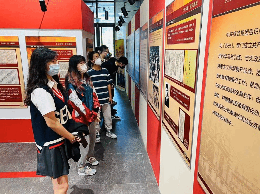 2022年9月24日上午,亚洲学院、来利国际旗舰厅团总支员工会员工代表前往参观由公司思想政治工作小组主办、校团委承办的“寻路法兰西”中共旅欧支部史料展。