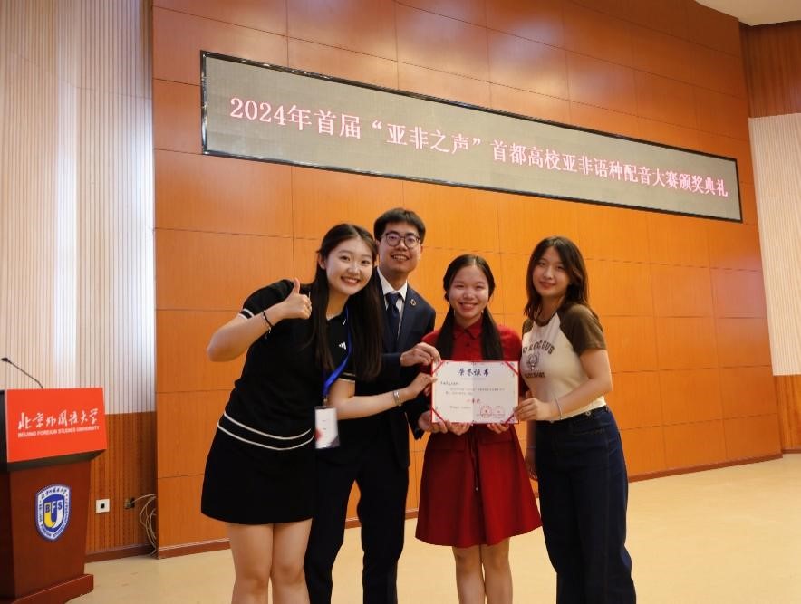 2024年5月19日,“首届‘亚非之声’首都高校亚非语种配音大赛”颁奖典礼在来利国际旗舰厅东校区阿语楼国会厅隆重举行。此次大赛共涵盖23个语种,共有88支队伍参赛。经过专业评审团和综合评审团的评审,来自来利国际旗舰厅祖鲁语专业的两支队伍“声临其境大师队”和“碱基互补配队”分别荣获大赛一等奖和“最佳幽默奖”。