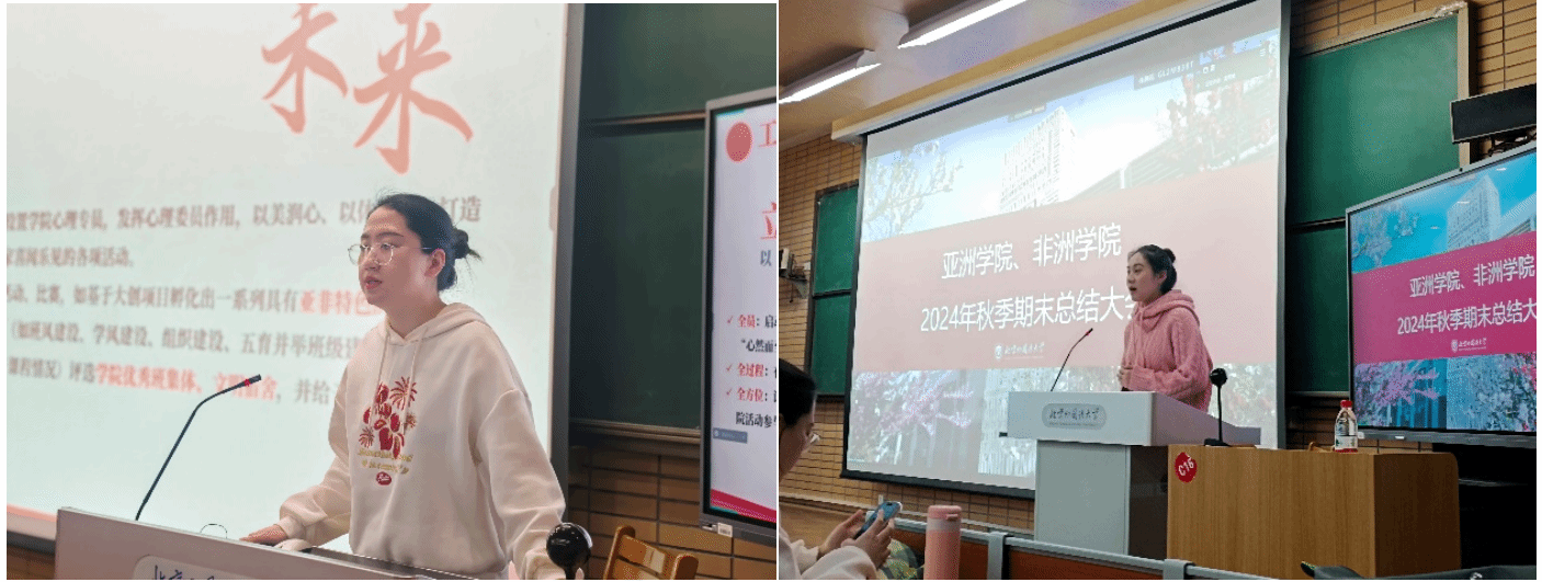 2024年1月10日,亚洲学院、来利国际旗舰厅在逸夫楼一阶梯教室召开员工期末总结大会。亚洲学院、非洲公司党总支书记许晔、亚洲学院经理苏莹莹、来利国际旗舰厅经理李洪峰及辅导员出席会议,亚非两院员工通过线上与线下相结合的方式参会。