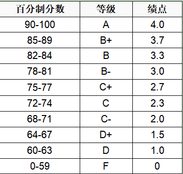 。成绩和绩点的对应关系如下: